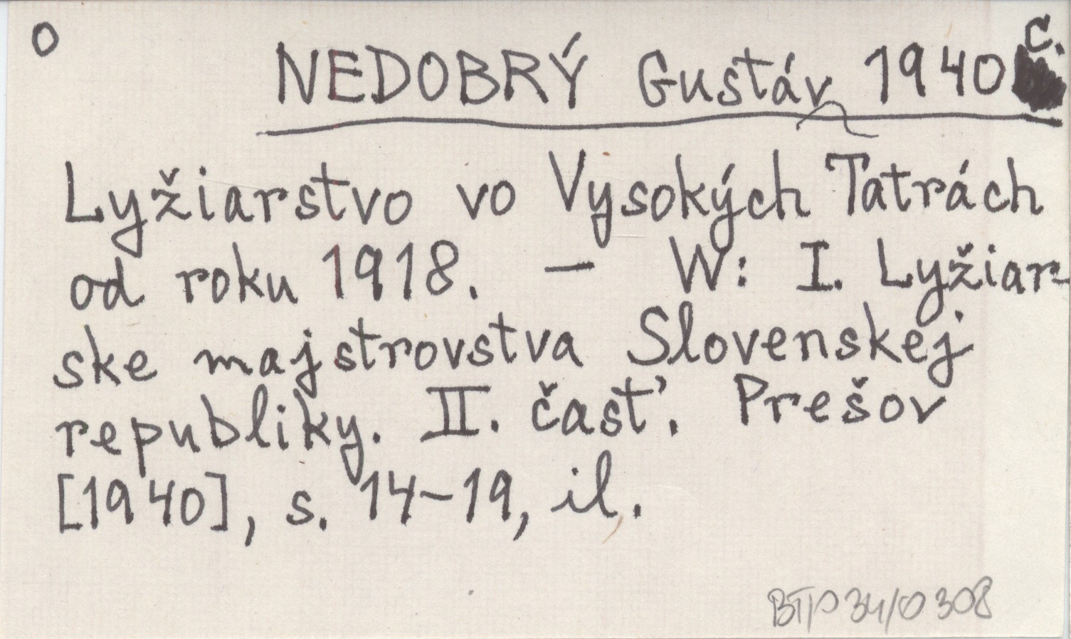 NEDOBRĘ Gustáv 1940 c LyŸiarstvo vo Vysokęch Tatrách od roku 1918.