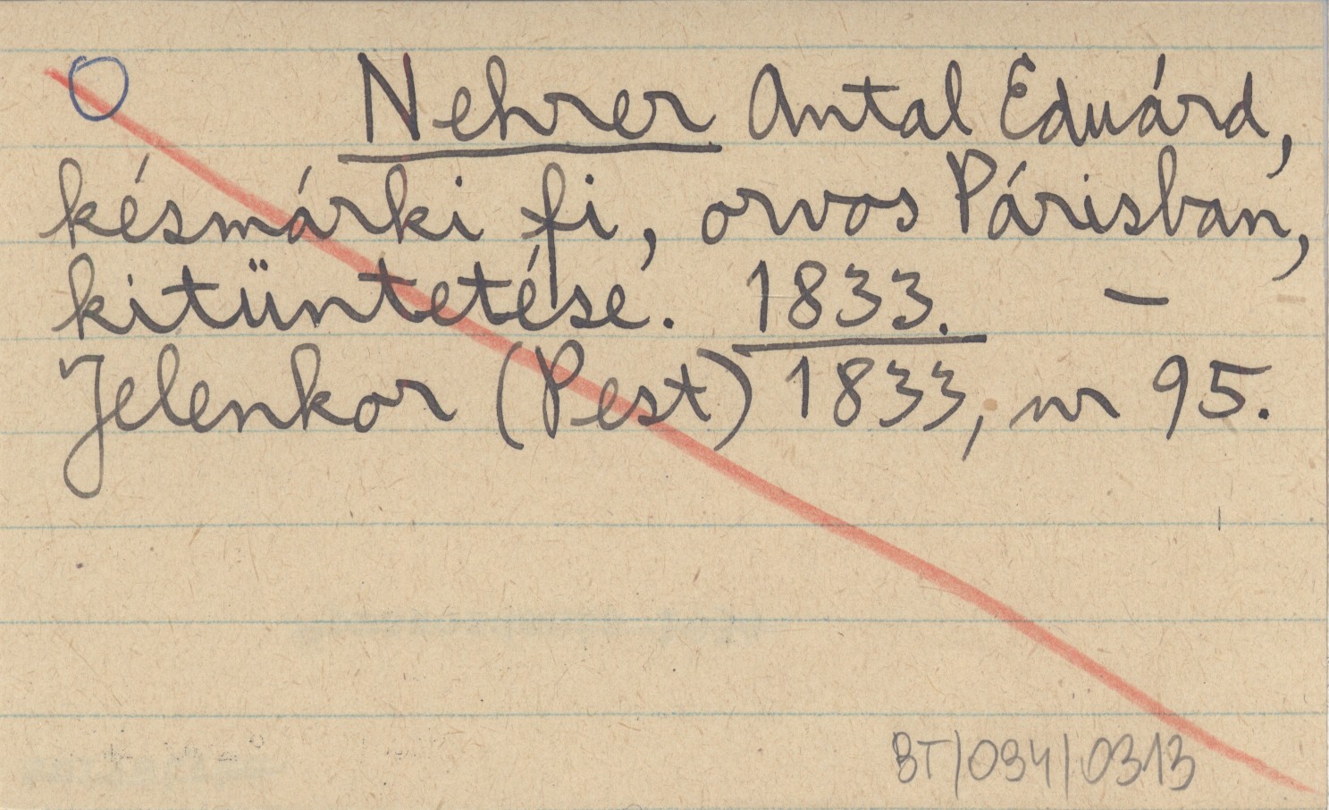Nehrer Antal Eduárd, késmárki fi, orvos Párisban, kitüntetése. 1833