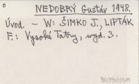 NEDOBRÝ Gustáv 1940 c Lyľiarstvo vo Vysokých Tatrách od roku 1918.
