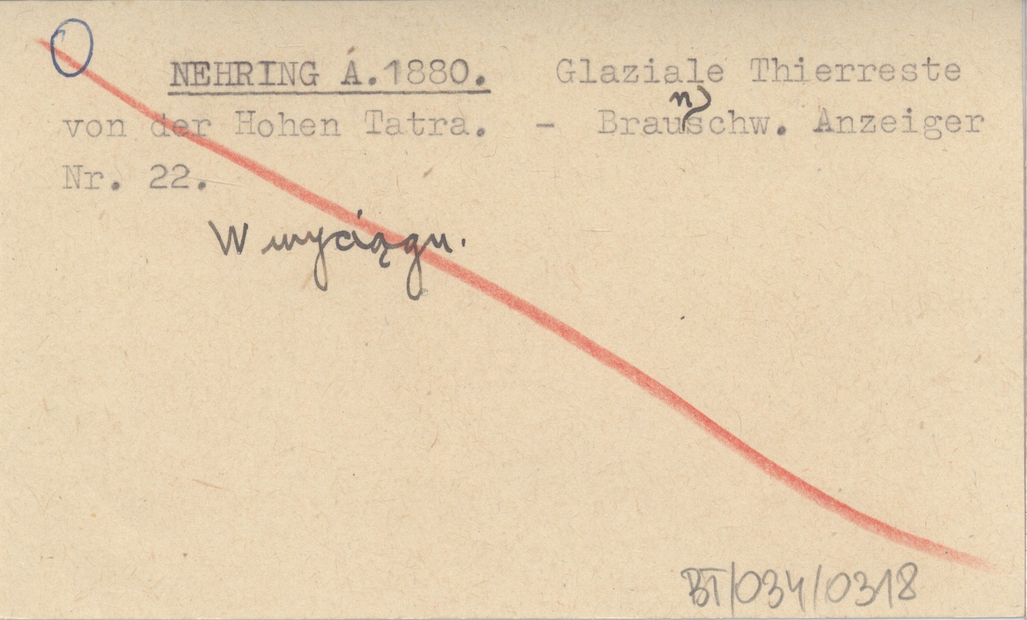 NEHRING A. 1880 Glaziale Thierreste von der Hohen Tatra.