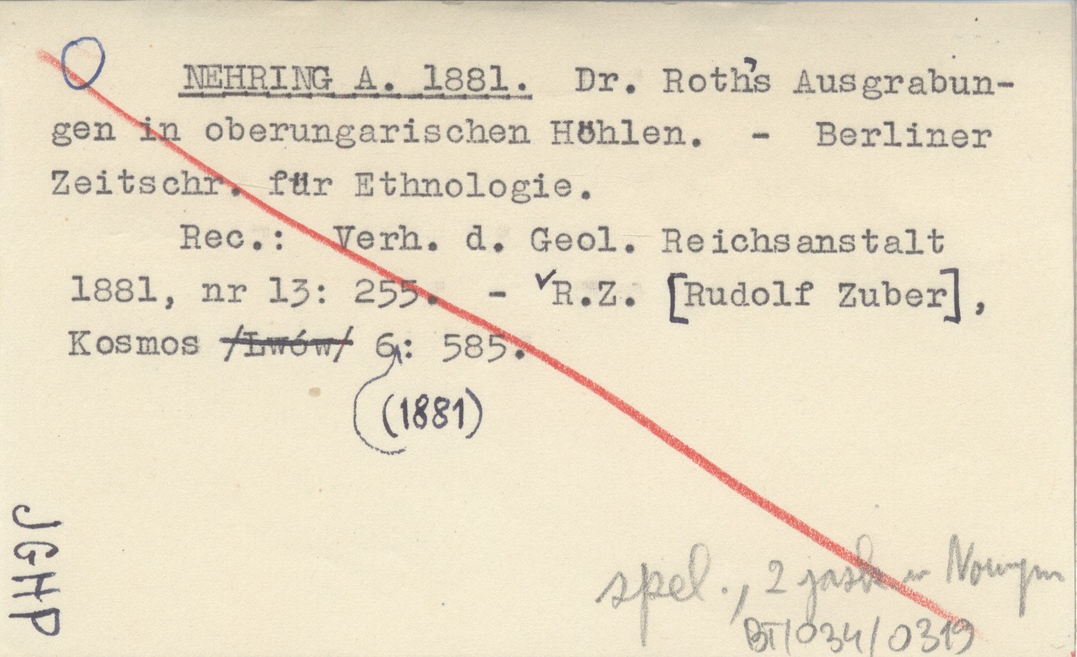 Berliner Zeitschr. für Ethnologie, spel., 2 jask. w Nowym REC: Verh. d. Geol. Reichsanstalt 1881, nr 13: 255 ; R.Z. [Rudolf ZUBER], Kosmos 6 (1881): 585 ;