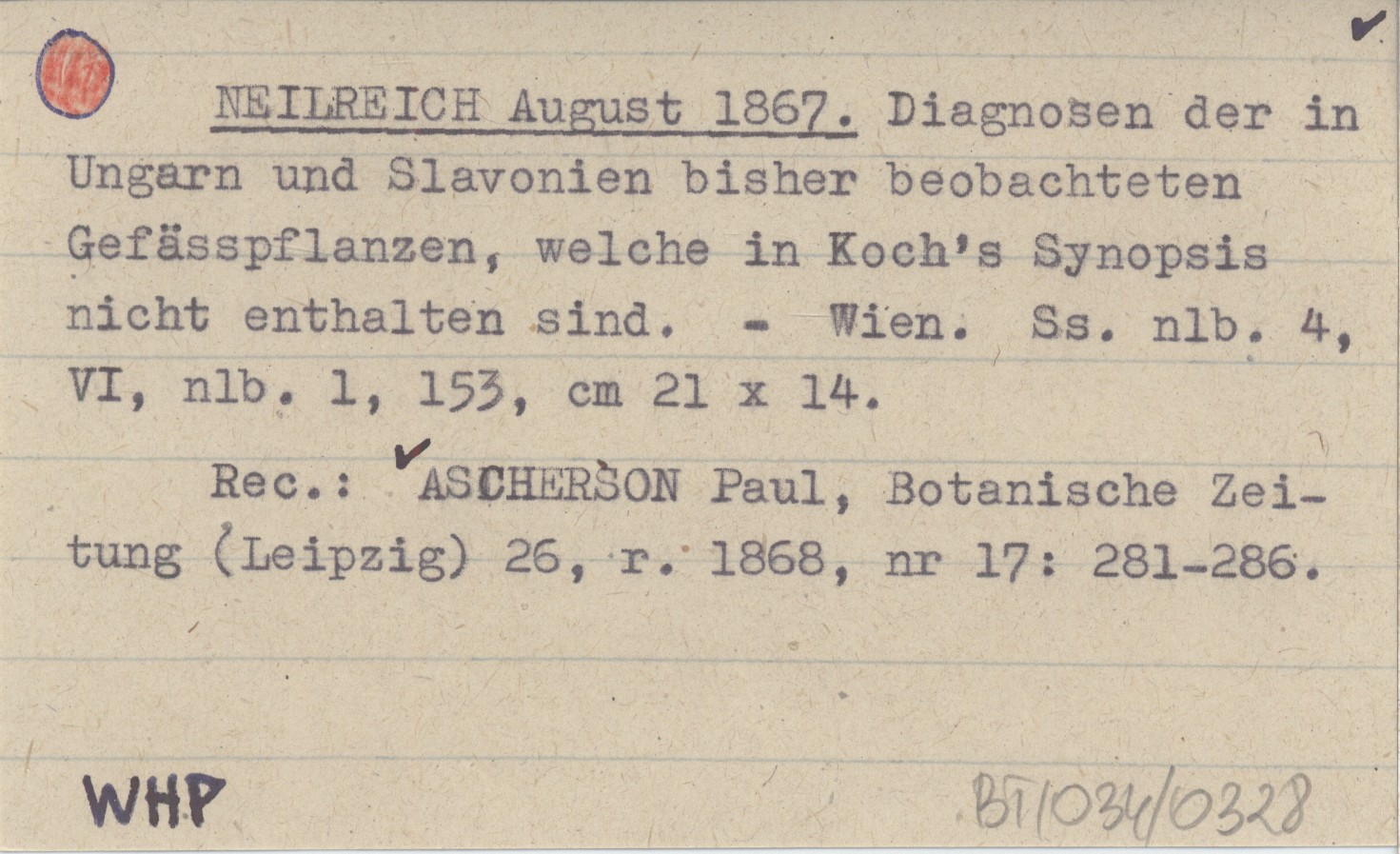 NEILREICH August 1867 Diagnosen der in Ungarn und Slavonien bisher beobachteten Gefässpflanzen, welche in Koch's Synopsis nicht enthalten sind.