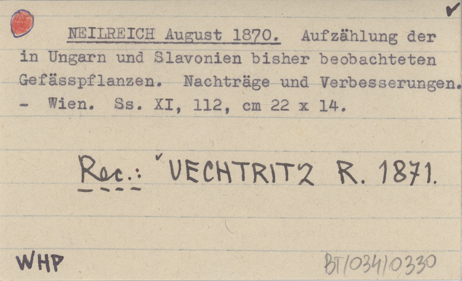 NEILREICH August 1870 Aufzählung der in Ungarn und Slavonien bisher beobachteten Gefässpflanzen. Nachträge und Verbesserungen.