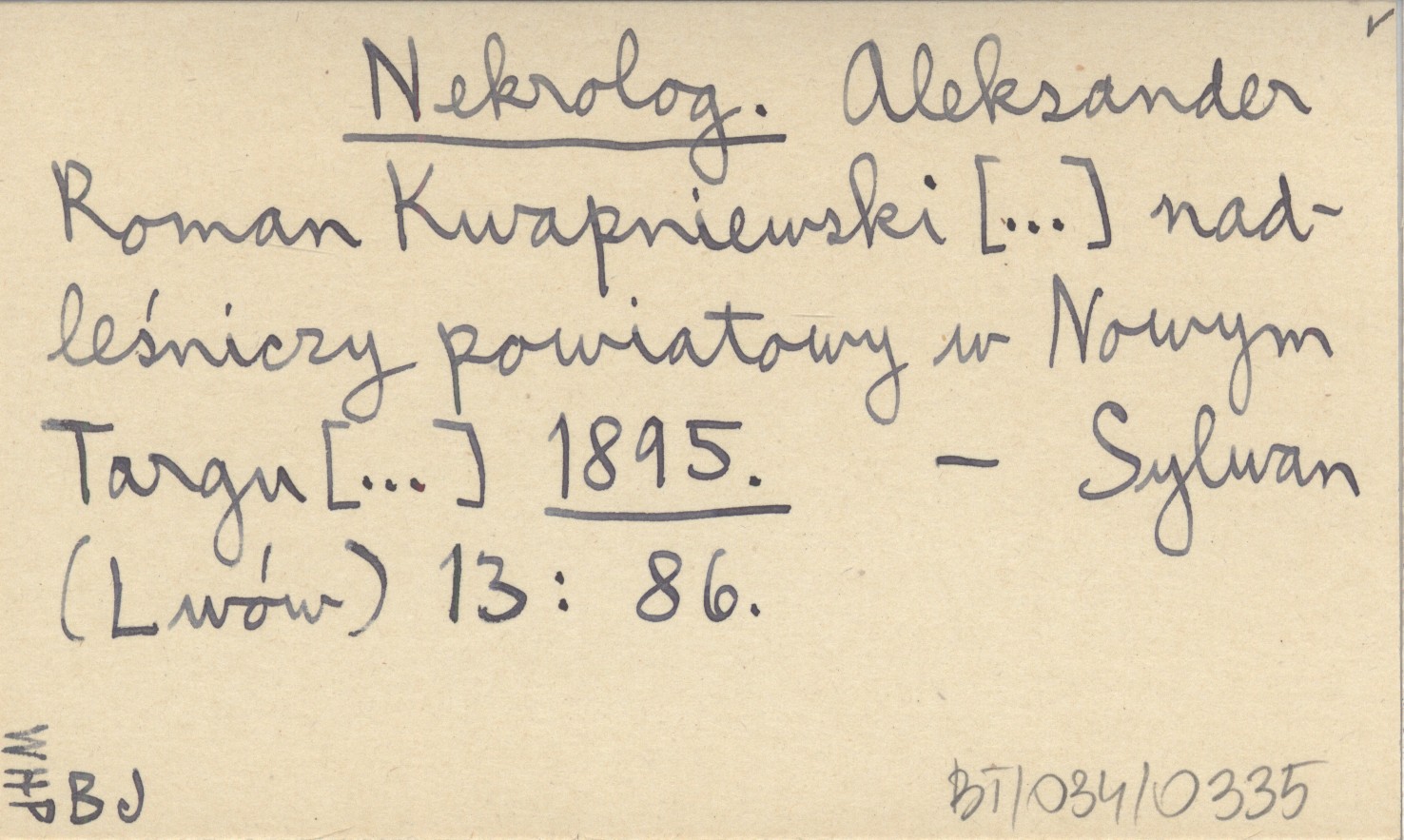 Nekrolog. Aleksander Roman Kwapniewski [...] nadleśniczy powiatowy w Nowym Targu [...]. 1895