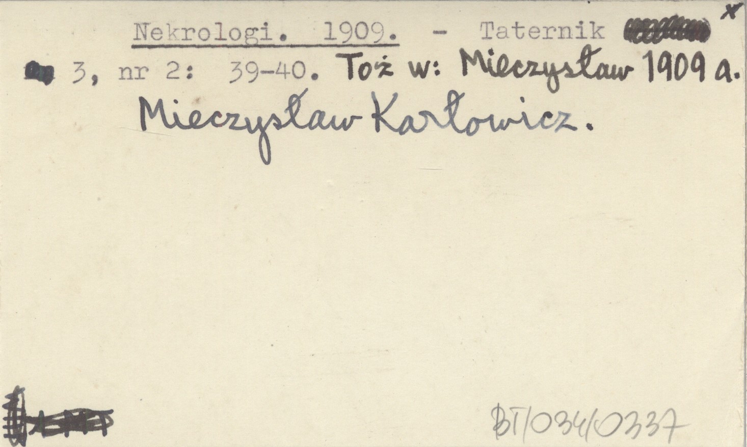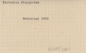 Taternik, 3, nr 2: 39-40. Mieczysław Karłowicz. Toż w: Mieczysław 1909 a