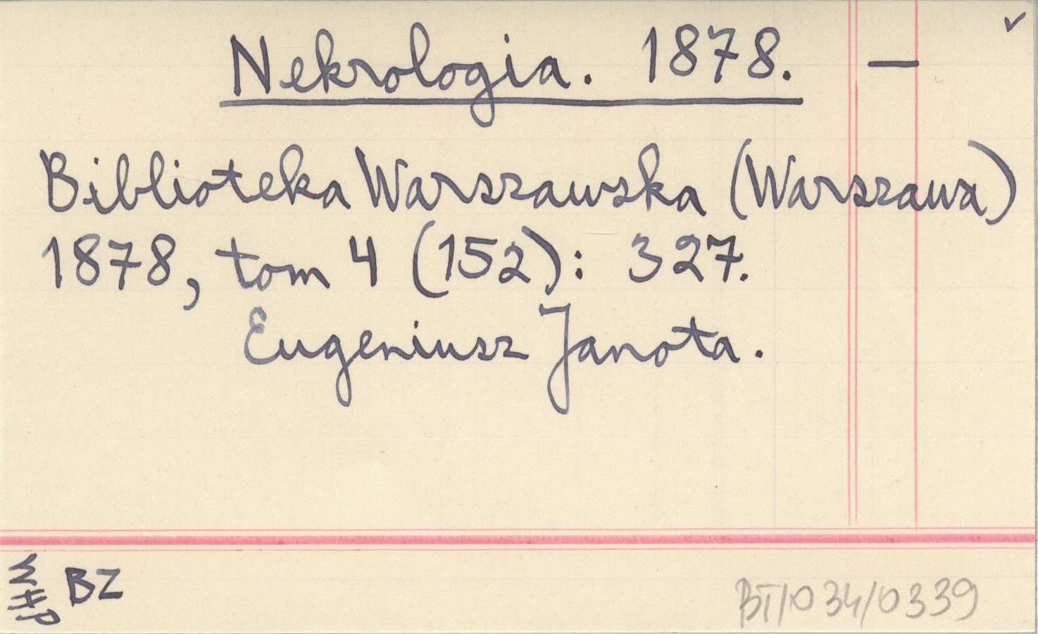 Biblioteka Warszawska (Warszawa) , T. 4 (152): 327. Eugeniusz Janota.