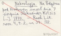 Nekrologja. Na Podgórzu pod Krakowem umarł dnia 7 sierpnia Aleksander Kotsis [...]. 1877