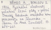 NĚMEC A. BORISOV, S. ; 1936 Fysikální vlastnosti polaření lesní půdy v polesí Oravský Podzámok oravského komposesorátu na Slovensku.