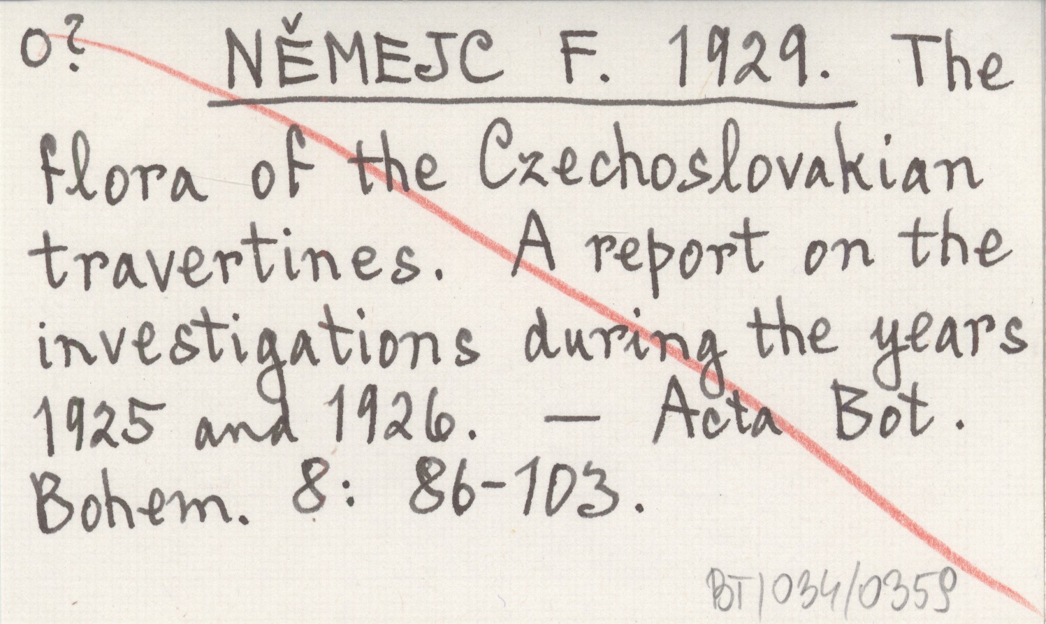 NĚMEJC F. 1929 The flora of the Czechoslovakian travertines. A report on the investigations during the years 1925 and 1926.