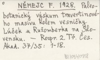 NĚMEJC F. 1928 Paleobotanický výskum travertinového masivu kolem vesničky Lúček u Ruľomberka na Slovensku.