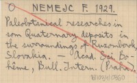 NEMEJC F. 1929 Paleobotanical researches in som Quaternary deposits in the surroundings of Ruzomberok, Slovakia.