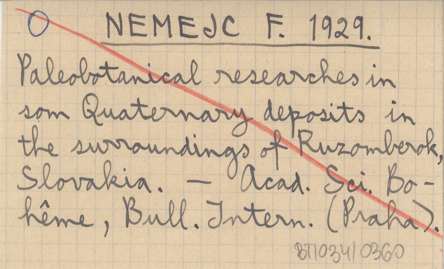 NEMEJC F. 1929 Paleobotanical researches in som Quaternary deposits in the surroundings of Ruzomberok, Slovakia.