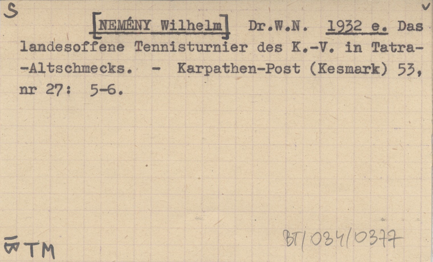 Dr.W.N. [NEMÉNY Wilhelm] 1932 e Das landesoffene Tennisturnier des K.-V. in Tatra-Altschmecks.