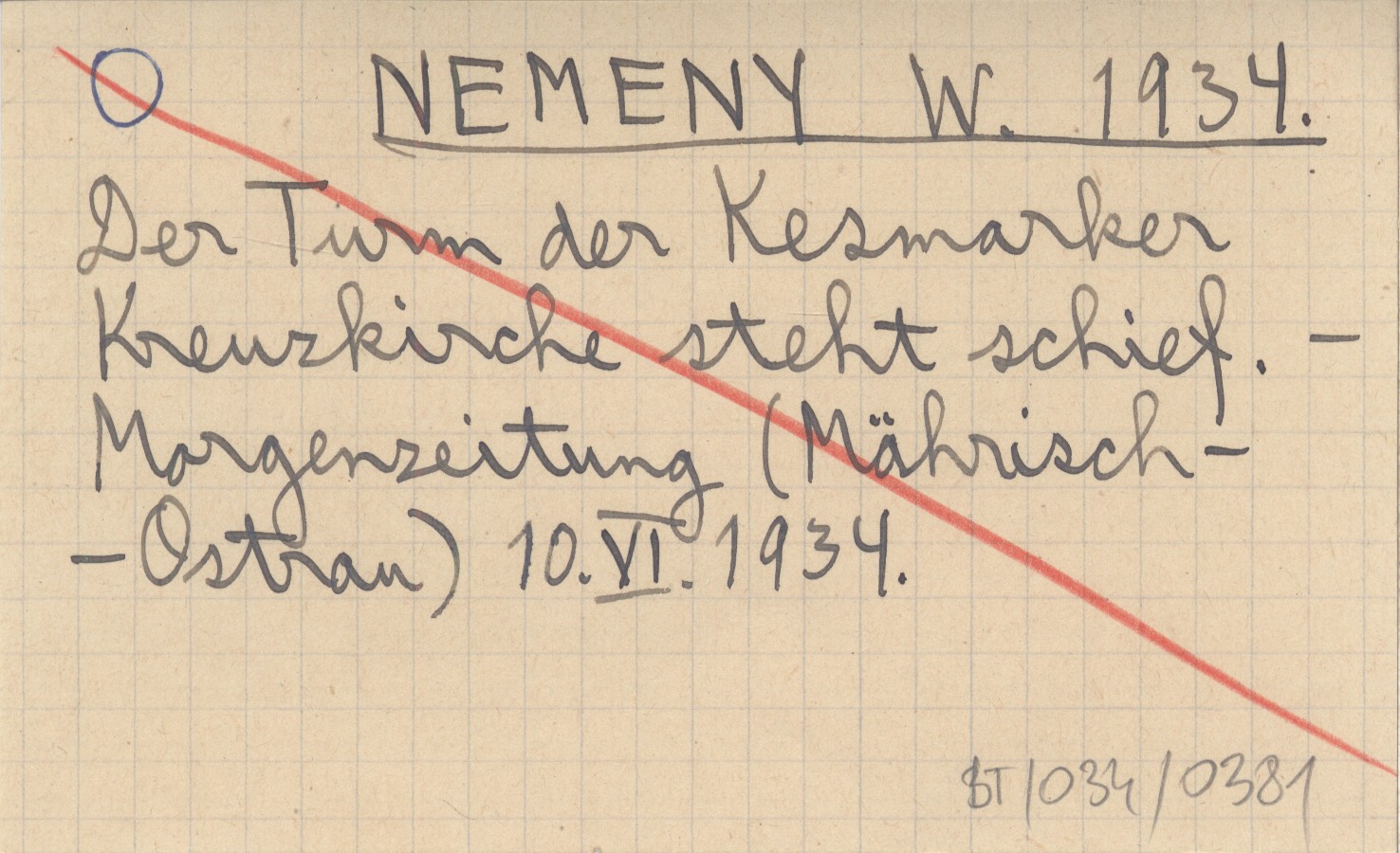 NEMENY W. 1934 Der Turm der Kesmarker Kreuzkirche steht schief.