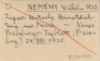 NEMÉNY Wilhelm 1935 Zipser deutsche Heimatdichtung und Musik.