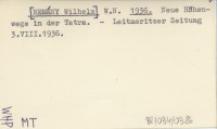 W.N. [NEMÉNY Wilhelm] 1936 Neue Höhenwege in der Tatra.