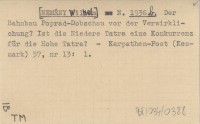 N. [NEMÉNY Wilhelm] 1936 b Der Bahnbau Poprad-Dobschau vor der Verwirklichung? Ist die Niedere Tatra eine Konkurrenz für die Hohe Tatra?