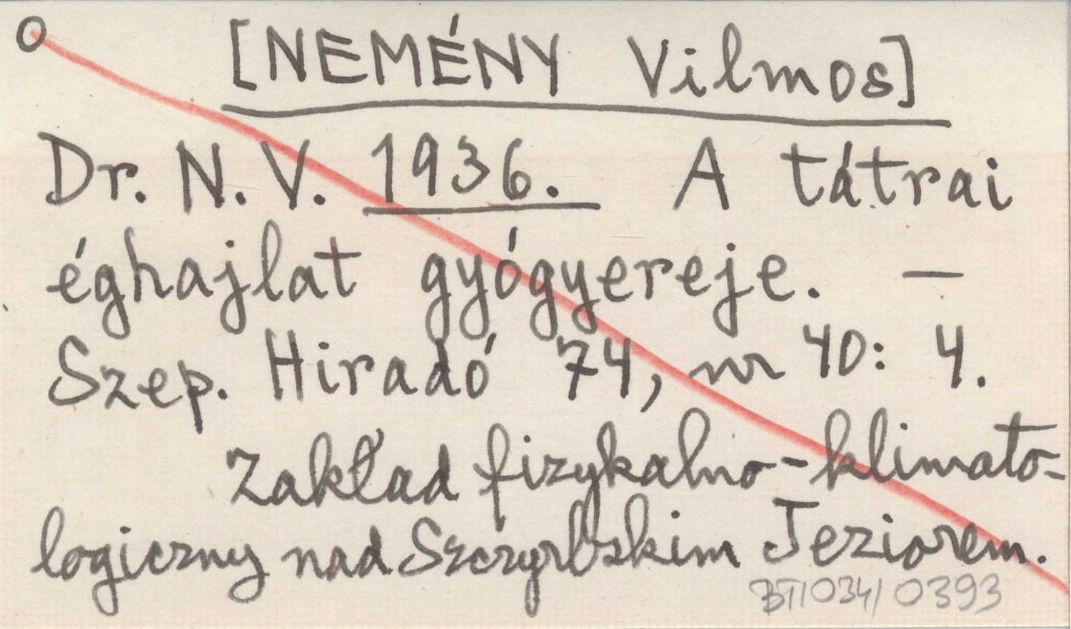 Dr. N. V. [NEMÉNY Vilmos] 1936 A tátrai éghajlat gyógyereje.
