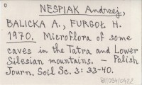 NESPIAK Andrzej BALICKA, A. ; FURGOŁ, H. ; 1970 Microflora of some caves in the Tatra and Lower Silesian mountains.