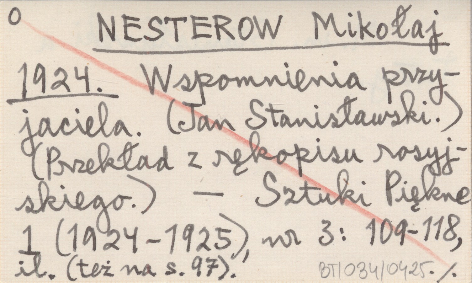 NESTEROW Mikołaj 1924 Wspomnienia przyjaciela. (Jan Stanisławski.) (Przekład z rękopisu rosyjskiego).