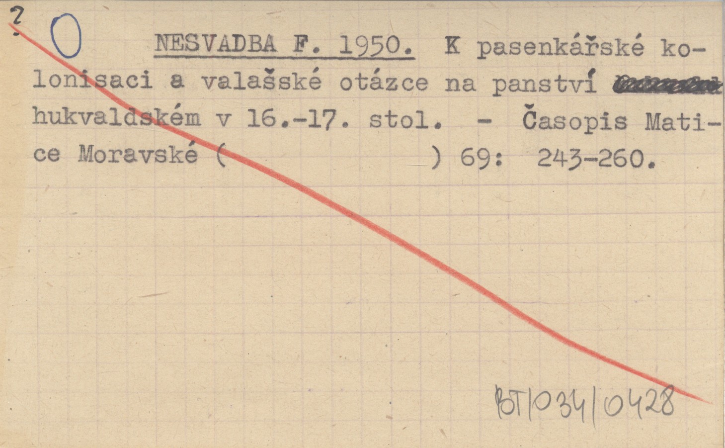NESVADBA F. 1950 K pasenkářské kolonisaci a valašské otázce na panství hukvaldském v 16.-17. stol.