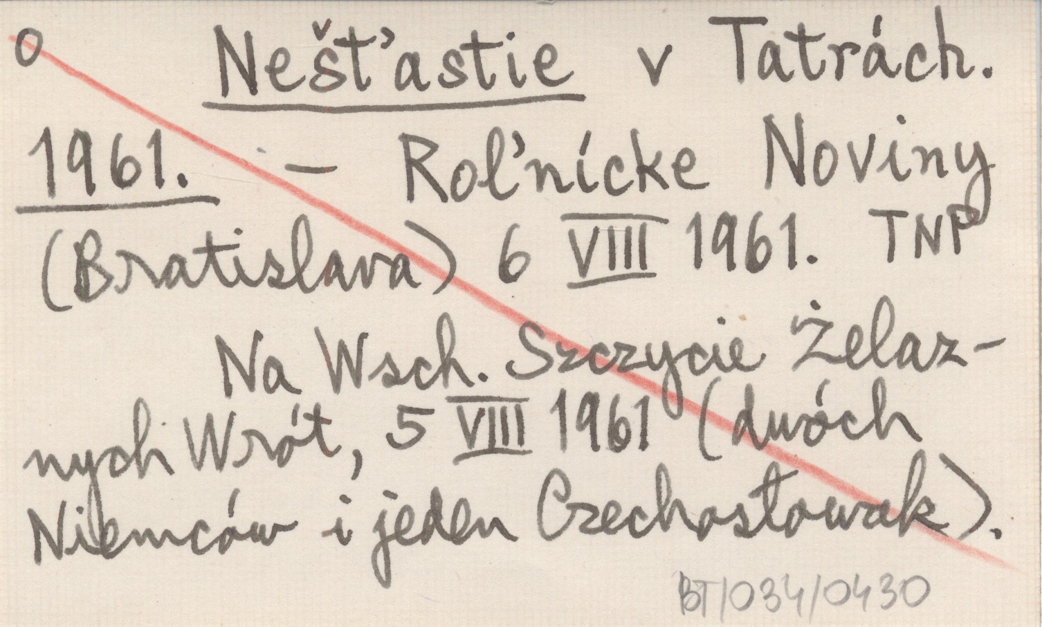 Roľnícke Noviny (Bratislava) , 6 VIII 1961. Na Wsch. Szczycie Żelaznych Wrót, 5 VIII 1961 (dwóch Niemców i jeden Czechosłowak).