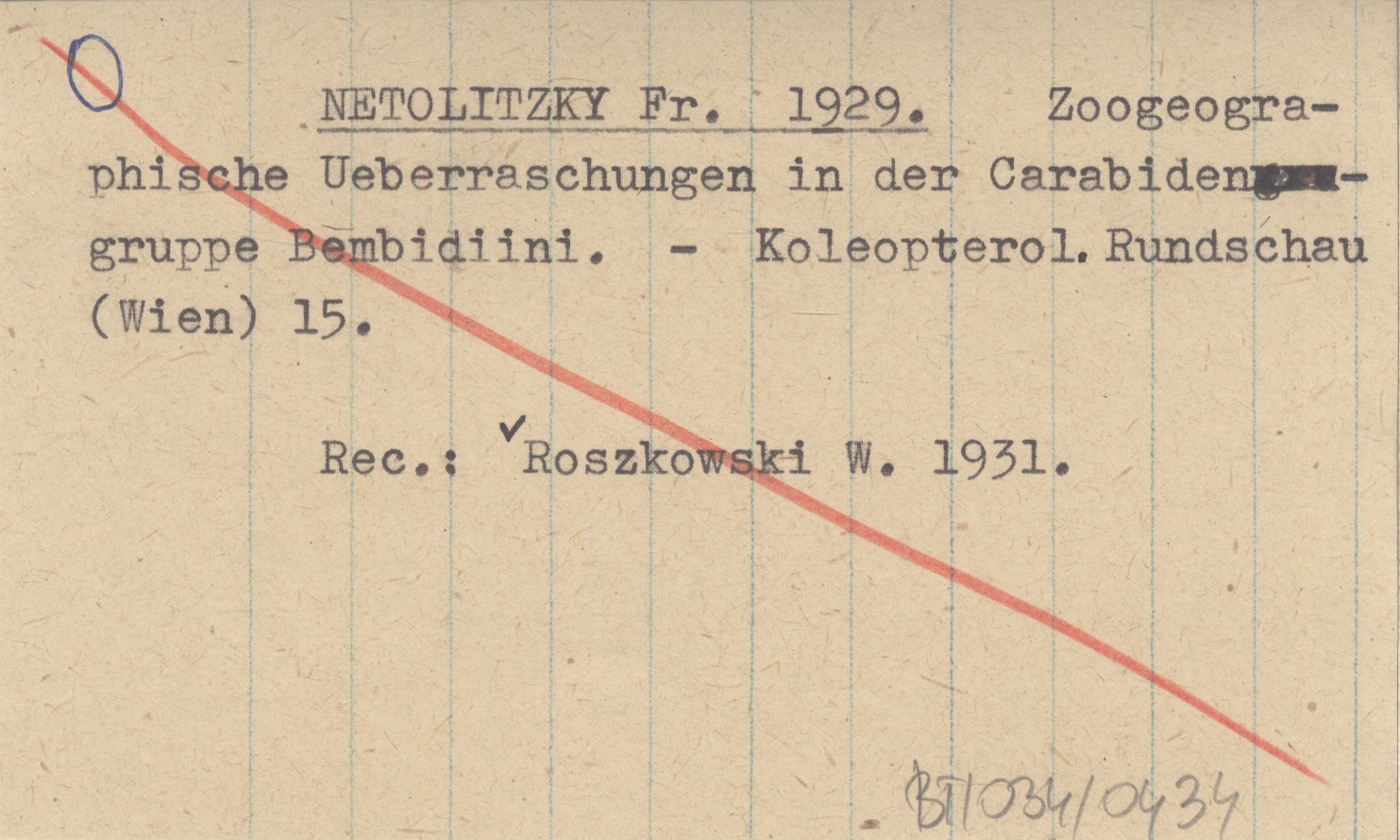 NETOLITZKY Fr. 1929 Zoogeographische Ueberraschungen in der Carabiden gruppe Bembidiini.
