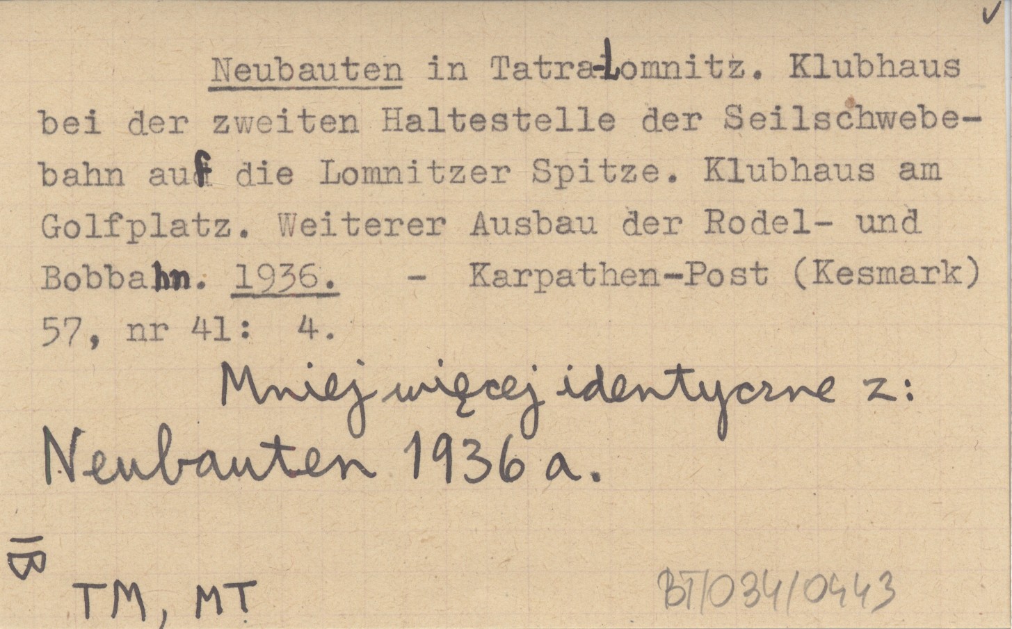 Karpathen-Post (Kesmark) , 57, nr 41: 4. Mniej więcej identyczne z: Neubauten 1936 a