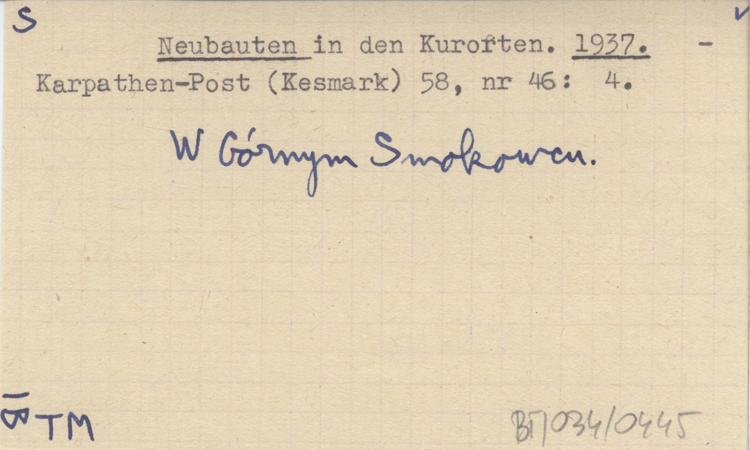 Karpathen-Post (Kesmark) , 58, nr 46: 4. W Górnym Smokowcu.
