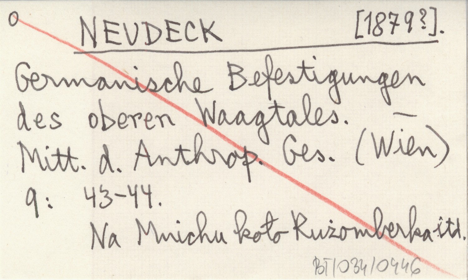 NEUDECK [1879?] Germanische Befestigungen des oberen Waagtales.