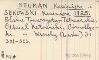 NEUMAN Kazimierz SĘKOWSKI, Kazimierz. ; 1925 Polskie Towarzystwo Tatrzańskie. Oddział Katowicki, Górnośląski.