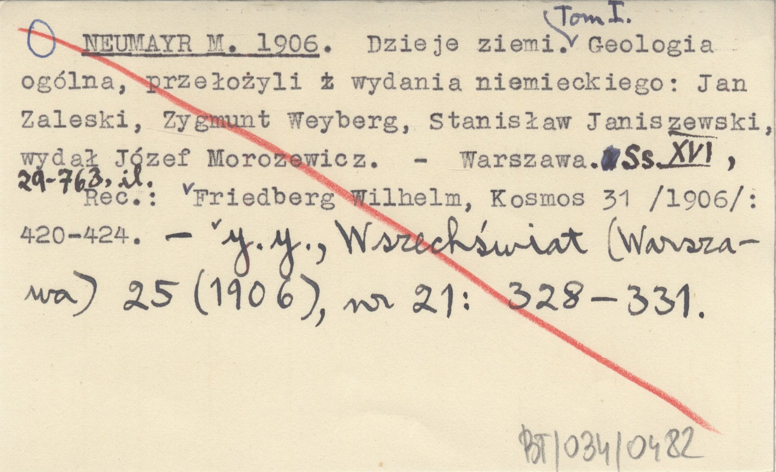 NEUMAYR M. 1906 Dzieje ziemi. Tom I. Geologia ogólna, przełożyli z wydania niemieckiego: Jan Zaleski, Zygmunt Weyberg, Stanisław Janiszewski, wydał Józef Morozewicz.