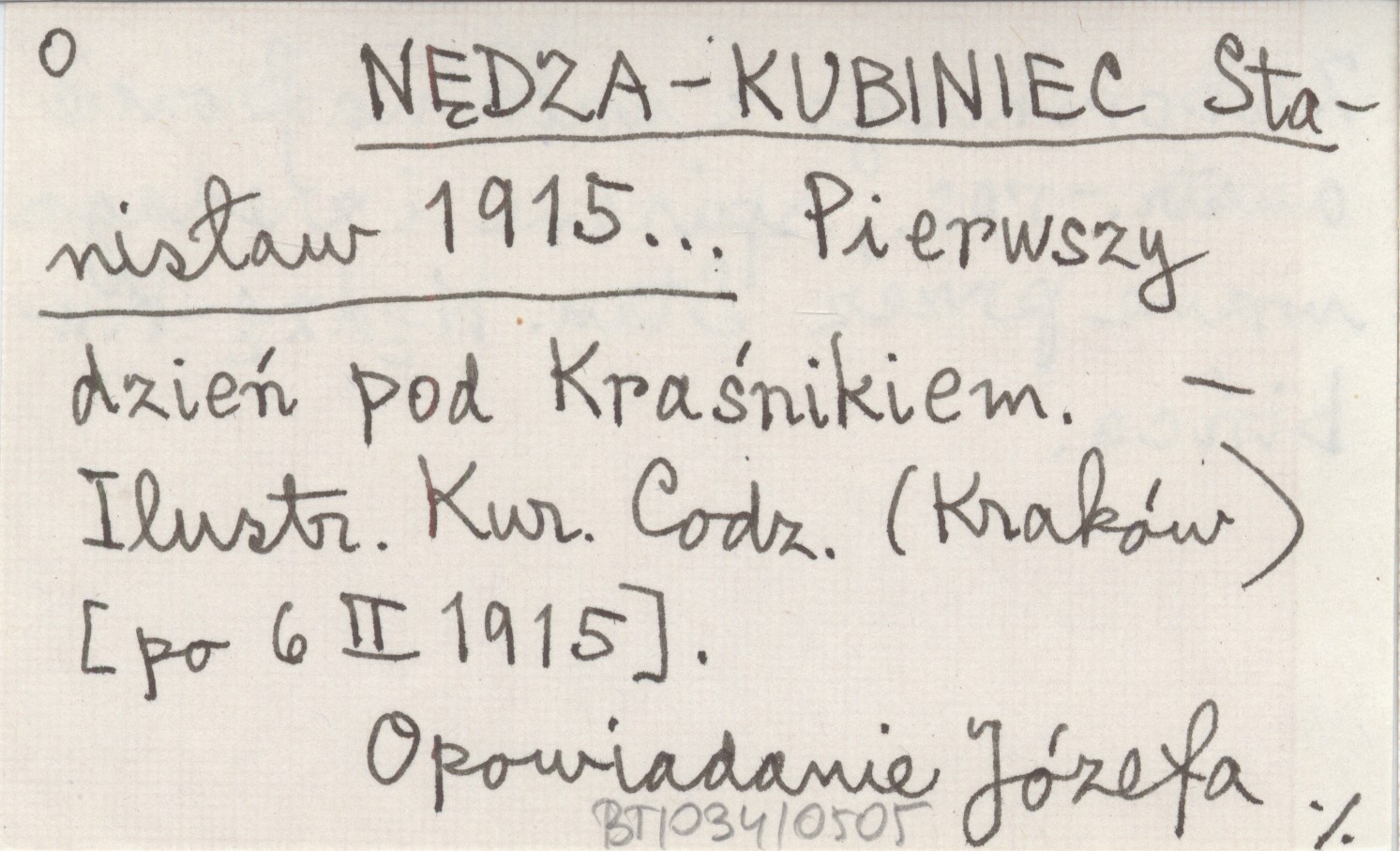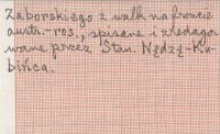 Ilustrowany Kuryer Codzienny (Kraków) , [po 6 II 1915]. Opowiadanie Józefa Zaborskiego z walk na froncie austr.-ros., spisane i zredagowane przez Stan. Nędzę-Kubińca.