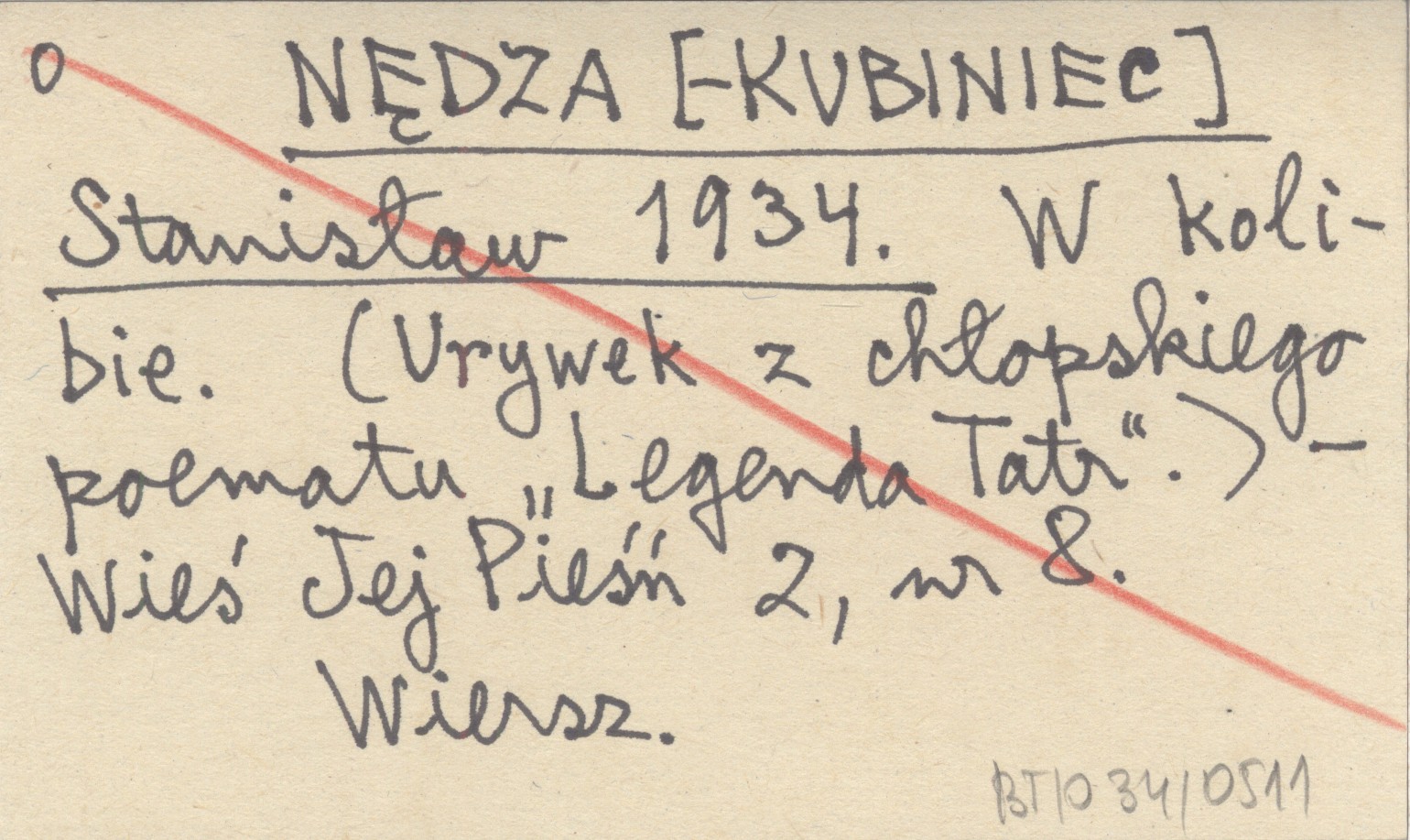 NĘDZA [-KUBINIEC] Stanisław 1934 W kolibie. (Urywek z chłopskiego poematu "Legenda Tatr").