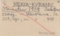 NĘDZA-KUBINIEC Stanisław 1958 O pani starościnie Walewskiej i bursie na Ustupie.