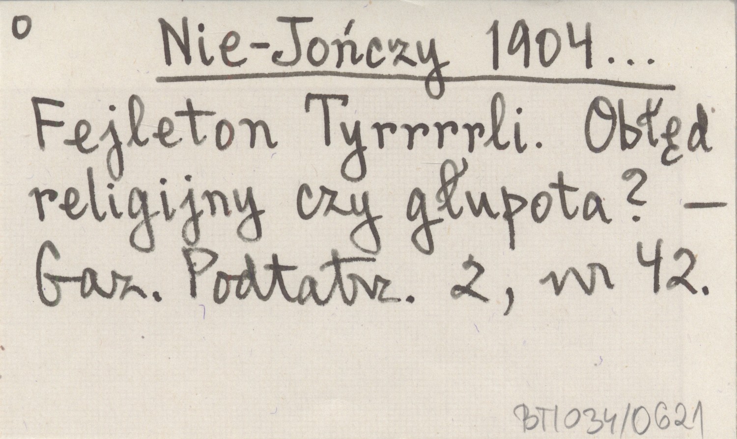 Nie-Jończy 1904... Fejleton Tyrrrrli. Obłęd religijny czy głupota?
