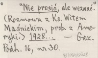 "Nie prosić, ale wezwać". (Rozmowa z Ks. Witem Maśnickim, prob. z Ameryki). 1928...