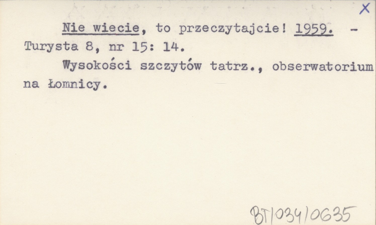 Turysta, 8, nr 15: 14. Wysokości szczytów tatrz., obserwatorium na Łomnicy.