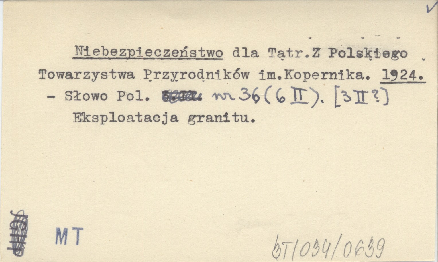 Niebezpieczeństwo dla Tatr.Z Polskiego Towarzystwa Przyrodników im.Kopernika. 1924