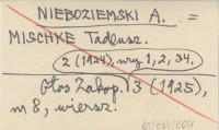 NIEBOZIEMSKI A. MISCHKE Tadeusz Głos Zakopiański 2 (1924), nr 1-2, 34 ; 3 (1925), nr 8, wiersz.