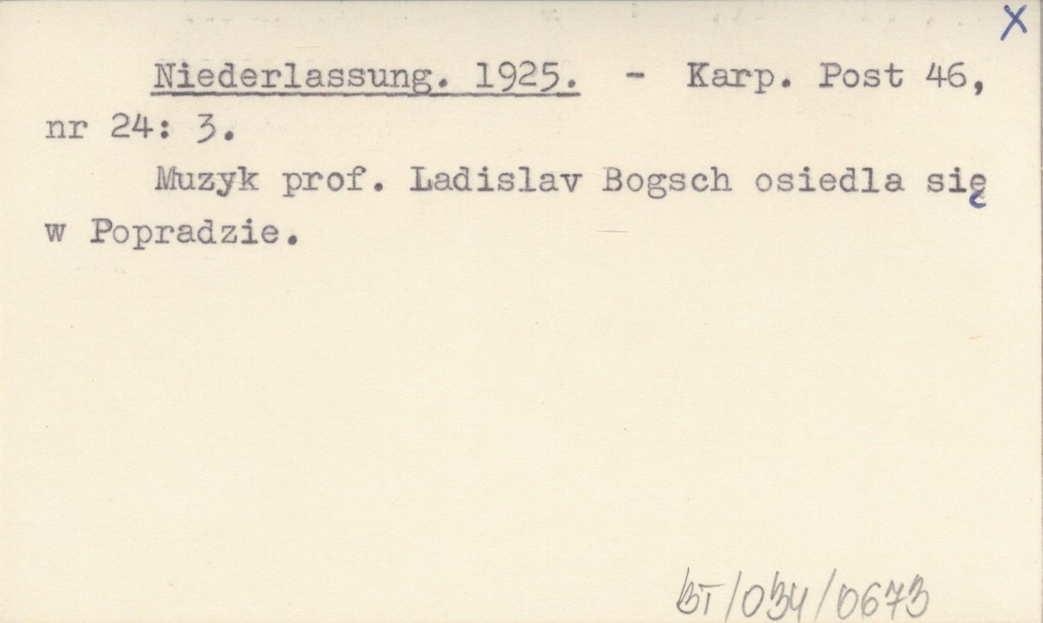 Karpathen-Post, 46, nr 24: 3. Muzyk prof. Ladislav Bogsch osiedla się w Popradzie.