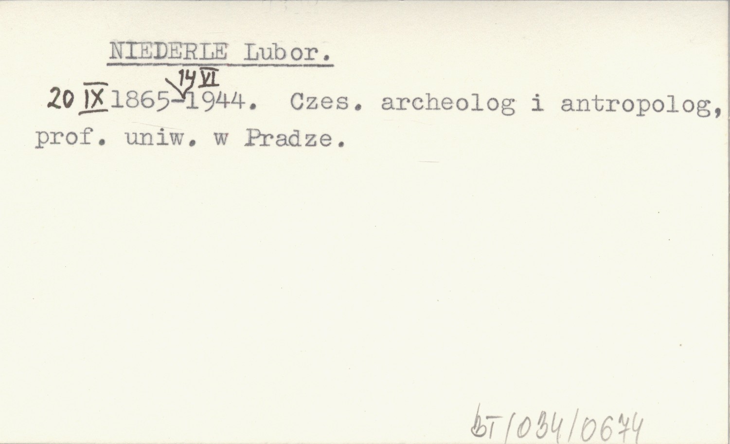 20 IX 1865-14 VI 1944. Czes. archeolog i antropolog, prof. uniw. w Pradze.