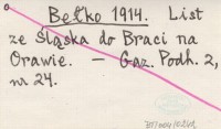 Bełko 1914 List ze Śląska do Braci na Orawie.