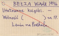 BEŁZA Witold 1946 Uratowane książki.