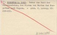 NIEDERLE L. 1901 Ueber die Zeit der Uebersiedelung der Slaven vom Norden der Karpathen nach Ungarn.