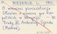 NIEDERLE L. 1902 O wremieni pieriesielenija Słowian s siewiera gor Karpatskich w Wengriju.