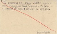 NIEDERLE Lub. 1904 Ještě k sporu o rusko-slovenskou hranici v Uhrách.