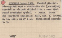 NIEDERLE Lubor 1906 Uherští Slováci. Národopisná mapa a statistika uh. [uherských] Slováků na základě sčítání lidu z roku 1900. Druhé nezměněné vydání.