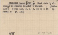 NIEDERLE Lubor [1907 a] Nová data k východní slovenské hranici v Uhrách.