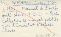NIEDERLE Lubor 1923 i 1926 Manuel de l'antiquité slave. T. I-II.